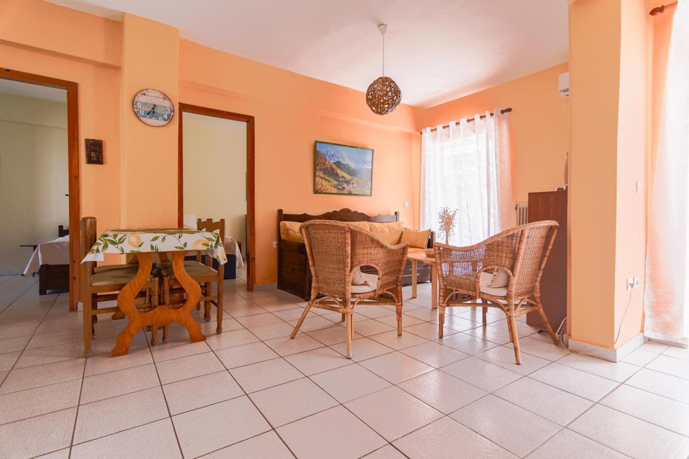 Two-Bedroom Apartment. The air-conditioned apartment has 1 bedroom, 1 bathroom, a kitchen and a seating area. The apartments kitchen is available for cooking and storing food. The spacious apartment features a washing machine, a wardrobe, a sofa as well as a terrace with sea views. The unit has 4 beds.