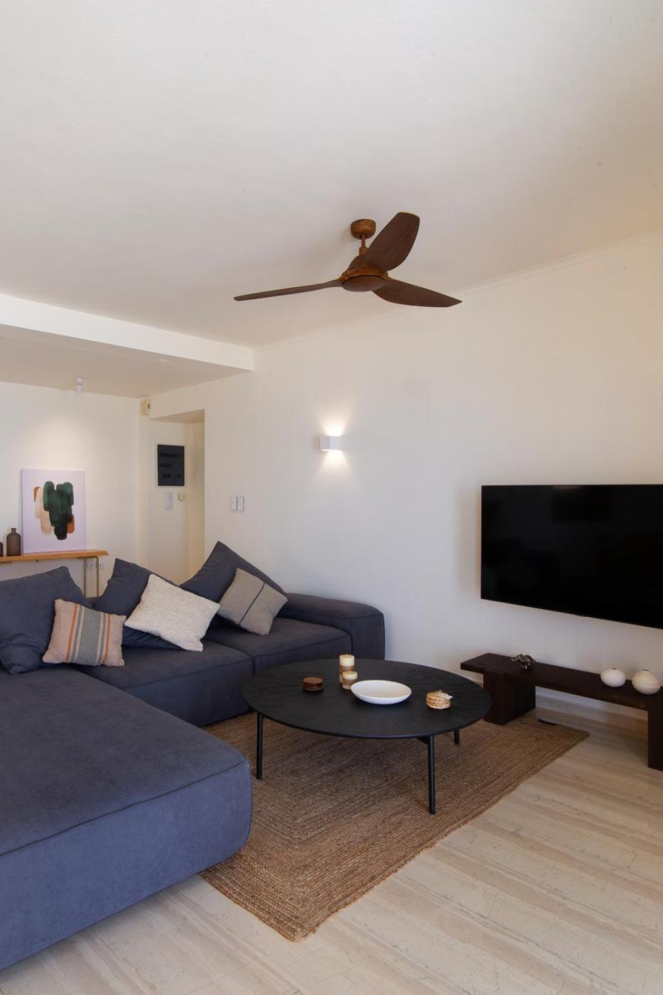 Three-Bedroom Apartment. This apartment offers a fireplace. This spacious apartment comprises 1 living room, 3 separate bedrooms and 2 bathrooms with a walk-in shower and free toiletries. Meals can be prepared in the well-fitted kitchen, which comes with a stovetop, a refrigerator, a dishwasher and kitchenware. The air-conditioned apartment provides a flat-screen TV with streaming services, a washing machine, a coffee machine, a seating area as well as sea views. The unit offers 5 beds.